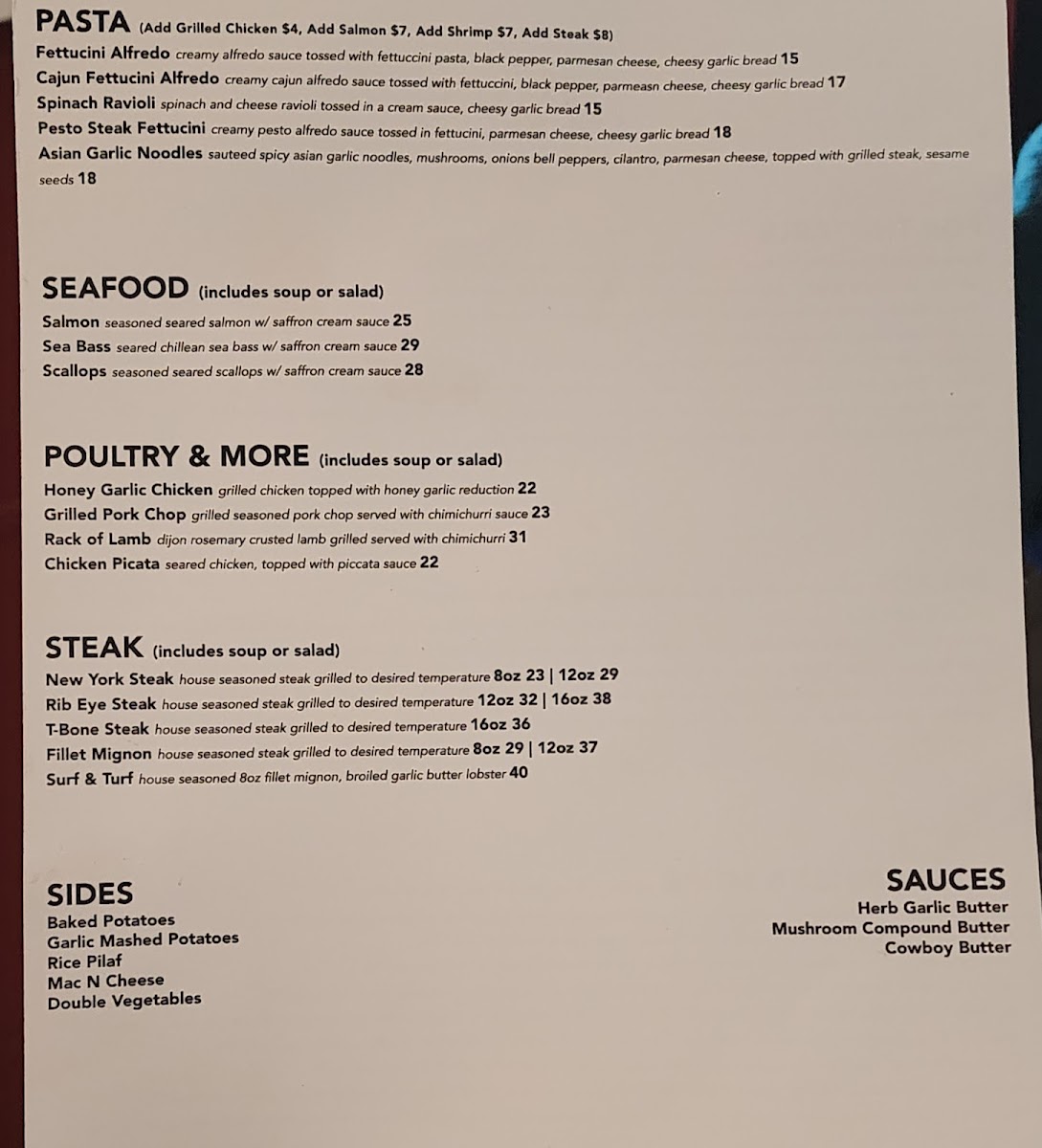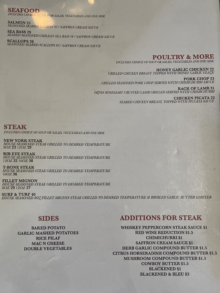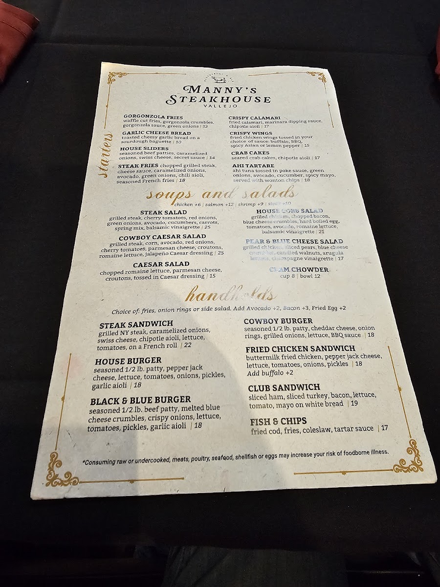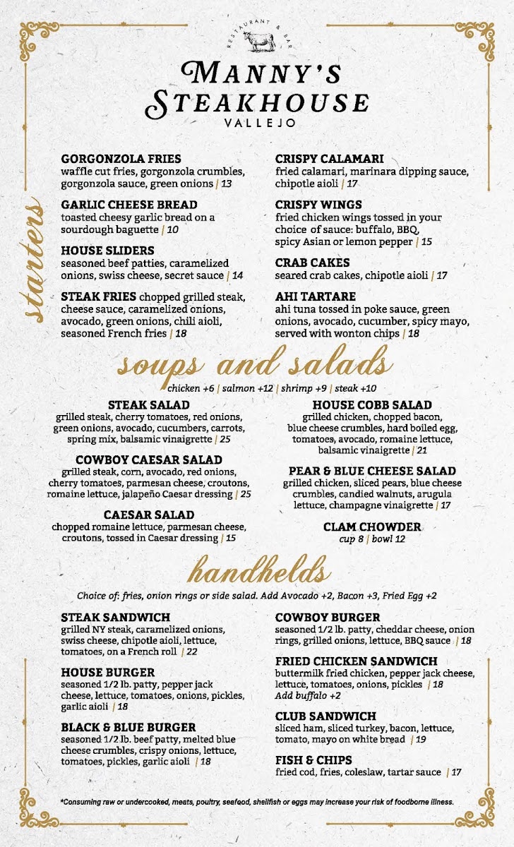 Manny's Steakhouse Menu
